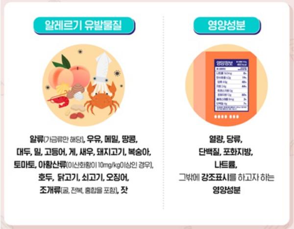 제품, 메뉴 게시판 등에 열량, 나트륨 등 영양성분 정보와 알류, 우유, 새우 등 알레르기를 유발할 수 있는 식품 정보를 제대로 표시했는지를 살핀다.