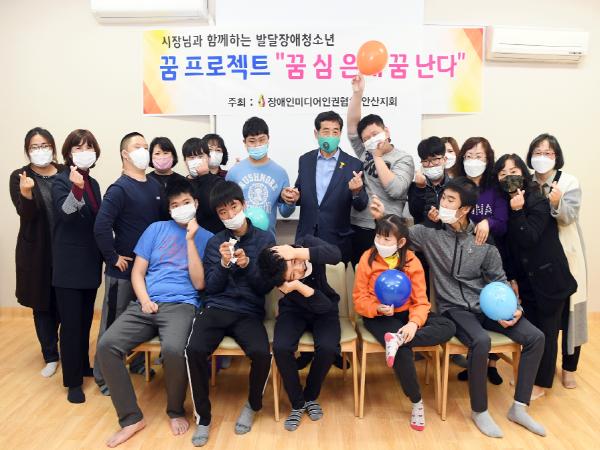 윤화섭 안산시장은 지난달 30일 상록구 본오동 소재 발달장애인 방과후 활동센터를 찾아 발달장애학생을 대상으로 진행된 ‘꿈 프로젝트’ 프로그램에 참여해 학생들을 격려했다.