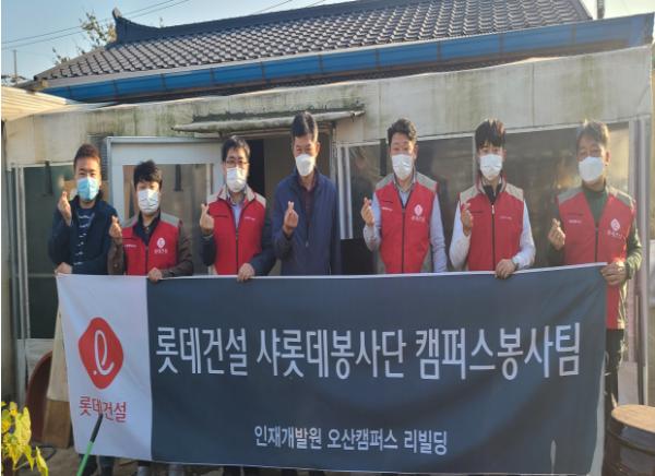 롯데건설 인재개발원 오산캠퍼스 재건축 현장 임직원들로 구성된 샤롯데봉사단은 2019년부터 오산시 소재 장애인시설 및 저소득 취약계층을 위한 주거환경개선을 지원하며 지역의 어려운 주민들을 위해 큰 관심을 갖고 활동하고 있다.