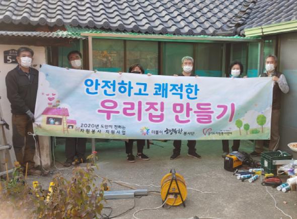이번 집수리 사업은 지원은 경기도자원봉사센터사업 공모사업을 통해 선정되어 지원된 사업비 500만원에 전기 및 건축 기술자로 구성된 봉사단원들의 재능기부를 통해 시행되었다. 대상가정은 홀몸노인 및 조손 가구 등 관내 취약계층으로 각 대상 가정의 상황에 따라 맞춤형으로 진행되었다. 파손된 지붕 수리 및 덮개 설치, 방한용 바람막이 설치와 위험한 전기시설 점검 및 교체로 겨울을 앞두고 따뜻하고 안전하게 지낼 수 있는 방안을 마련하였다.