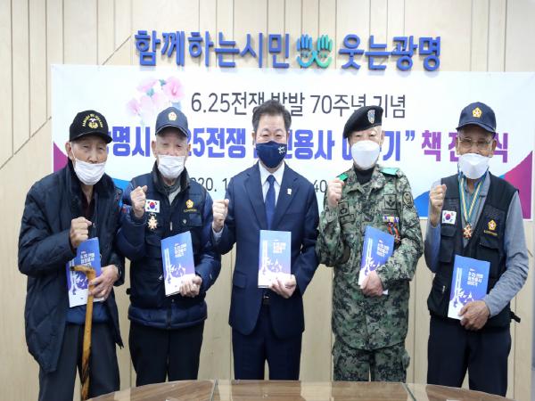 [KNT한국뉴스타임] 광명시는 ‘광명시 6.25전쟁 참전용사 이야기’책을 발간하고 2일 시청 영상회의실에서 6.25전쟁 참전 유공자들이 참석한 가운데 책 전달식을 가졌다.