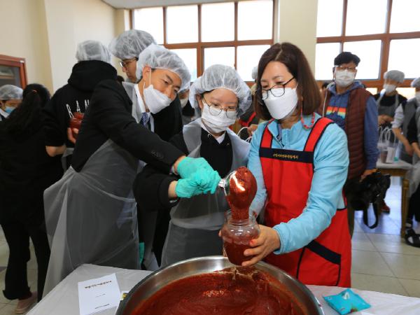 [KNT한국뉴스타임] 김종천 과천시장은 2일, “햇살가득 마을장독대사업”의 일환으로 과천 중앙고등학교 학생들과 함께 고추장을 담그며 전통장의 우수성과 전통장 활용에 대한 식생활 교육의 중요성을 전달하였다.