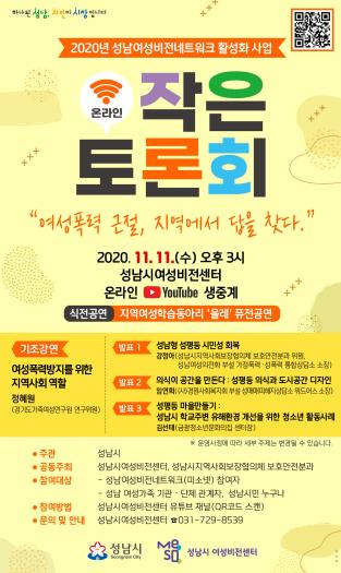 [KNT한국뉴스타임] 성남시는 오는 11월 11일 오후 3시~5시 ‘여성 폭력 근절, 지역에서 답을 찾다’를 주제로 한 온라인 토론회를 연다.