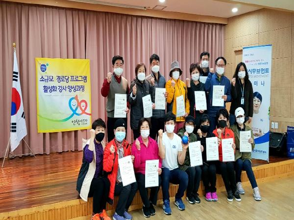[KNT한국뉴스타임] 부천시 인생이모작지원센터는 중장년층 24명을 대상으로 ‘소규모 경로당 활성화 강사 양성과정’을 운영하고 10월 30일 수료식을 가졌다.