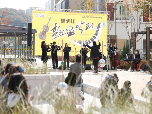 총 8회의 일정으로 개최한 이번 발코니 힐링음악회는 지난 달 17일에 모락산현대, 효성해링턴1단지를 시작으로, 21일에 동아에코빌 아파트, 24일에 효성청솔, 반도보라2단지, 29일에 무궁화선경아파트, 그리고 31일에는 오봉산마을1단지, 휴먼시아1단지 아파트에서 진행됐다.