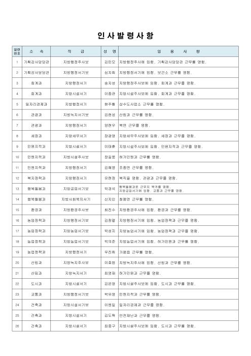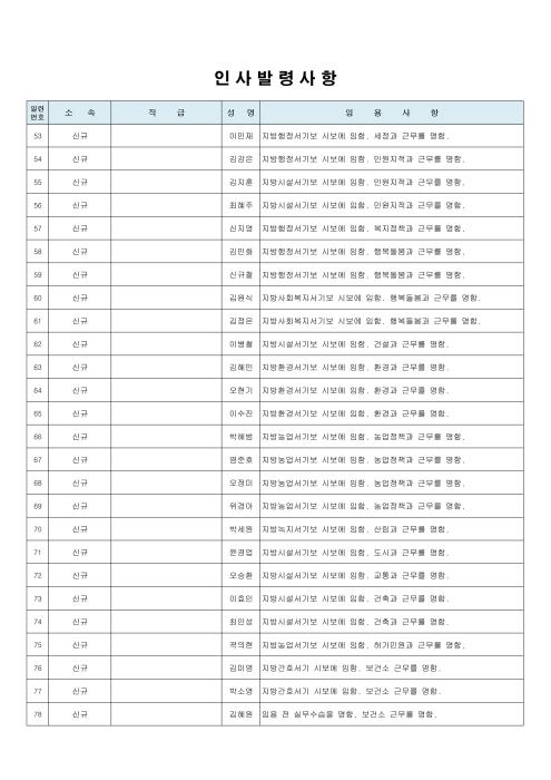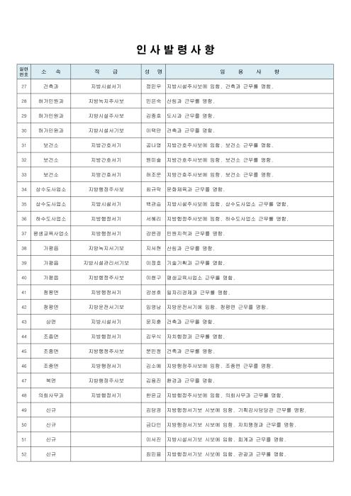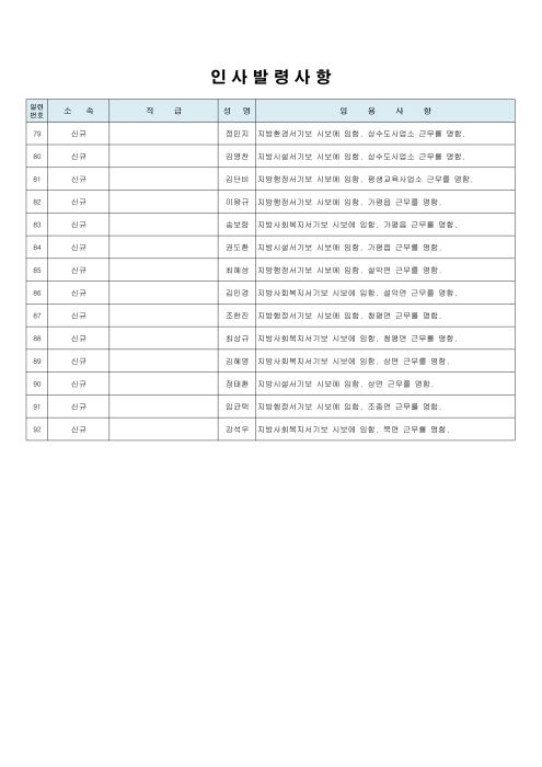[한국뉴스타임=명기자] 가평군 김성기 군수는 3일자로 신규 임용자 44명(남20, 여24)을 포함하여 92명의 7급이하 승진 및 전보 인사 발령을 실시하였다.