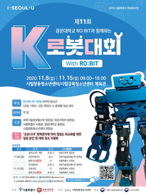 서울시와 광운대학교가 주최하는 ‘K로봇대회 with 로빛’은 전국 청소년들이 로봇에 대한 기초학습 능력을 키우고 창의력과 과학적 사고력을 배양할 수 있어 매년 인기가 높다. 국내최초 로봇 스포츠 게임단으로 국제 대회를 휩쓴 바 있는 광운대학교의 ‘로빛’도 이번 대회 준비를 함께 한다.