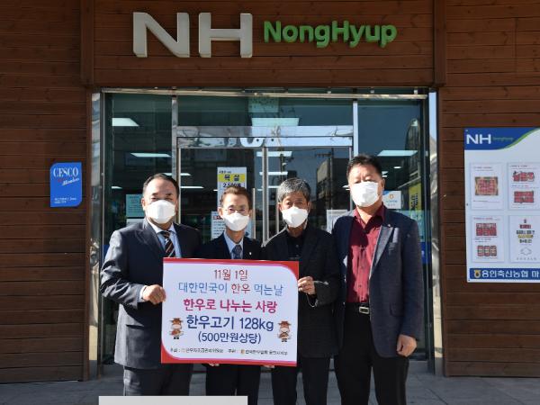 후원 전달식에는 전국한우협회 신동규 용인시지부장과 용인축산농협 최재학 조합장과 임직원, 용인시처인노인복지관 김기태 관장이 참석하였다.