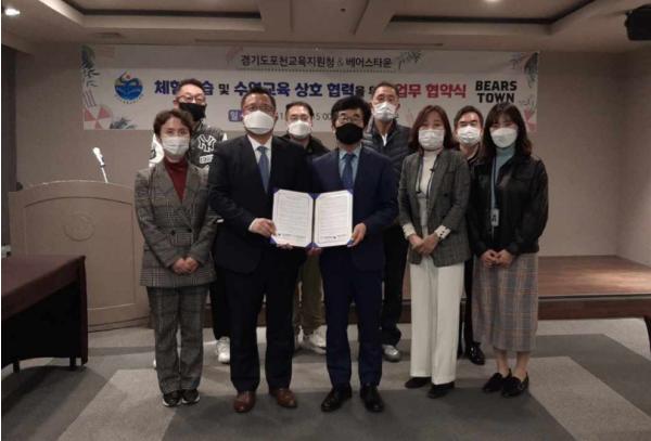 [KNT한국뉴스타임] 포천교육지원청은 11월 4일 베어스타운(대표이사 방병순)과 8대 분야 체험학습 생존 수영 확충을 위한 업무 협약식을 가졌다.