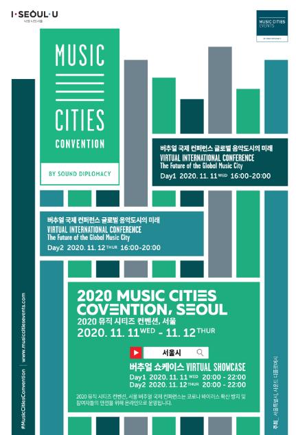 [KNT한국뉴스타임] 서울시는 영국 사운드 디플로머시와 공동으로 11월 11일(수)부터 12일(목) 양일간 『2020 뮤직 시티즈 컨벤션, 서울』을 ‘무관중·비대면 방식으로 개최한다.