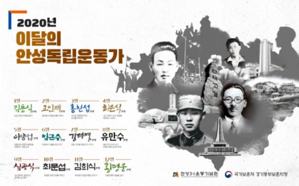[KNT한국뉴스타임] 안성시는 경기동부보훈지청과 매월 공동으로 선정하여 공표하는 ‘이달의 안성 독립운동가’의 2021년 대상 예비 명단을 발표하고 이의접수를 받은 후 최종 선정할 예정이라고 5일 밝혔다.