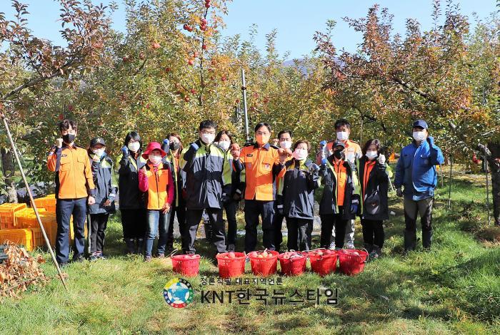 현재 인력 수급에 어려움을 겪고 있는 가평의 주요 특산품인 사과농가(북면 소법리 소재)를 소방공무원, 북면의용소방대 20여 명이 방문해 봉사활동을 실시했다.