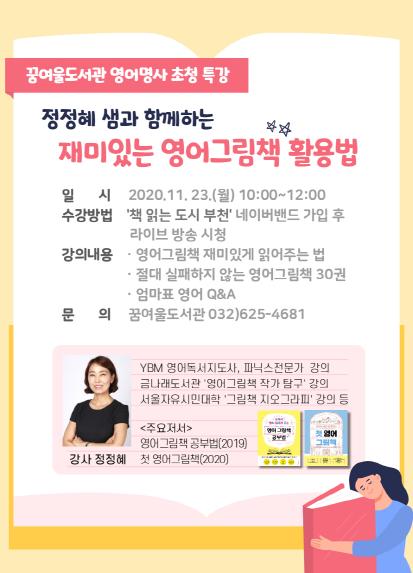 [KNT한국뉴스타임] 부천시 작동 소재 영어 주제 특성화 도서관인 꿈여울도서관은 영유아 및 초등학생 부모를 대상으로 11월 23일 영어명사 초청특강을 개최한다.