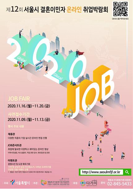 [KNT한국뉴스타임] 서울시는 오는 11월 16일(월)~11월 20일(금) 5일간, 코로나19 상황에 대응해 비대면으로 ‘제12회 서울시 결혼이민자 온라인 취업박람회’를 개최한다.