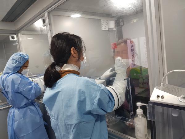 [KNT한국뉴스타임] 성남시 수정구보건소는 지난 달 19일부터 경기도 내 최초로 방역시스템과 냉난방이 갖춰진 이동형 검사부스를 설치해 코로나19 검사를 실시하고 있다.