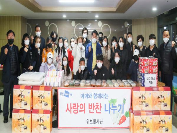 이들은 직접 만든 장만한 재료로 어묵볶음, 매실장아찌, 계란말이 등 밑반찬 13종을 만들어 라면, 이불패드 등과 함께 대상 가구에 전했다.
