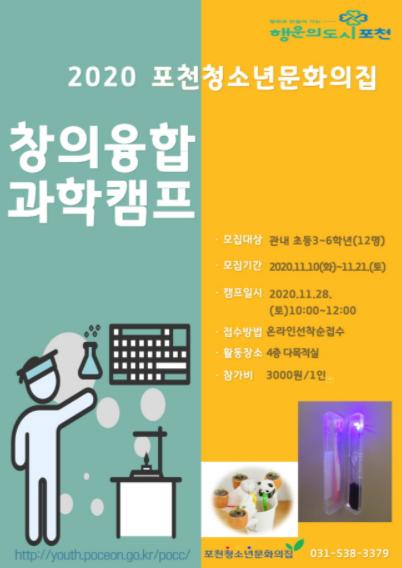 [KNT한국뉴스타임] 포천청소년문화의집은 4차 산업혁명 시대에 걸맞은 미래인재 양성을 위해 오는 21일까지 ‘창의·융합 과학캠프’에 참여할 관내 초등3~6학년 12명을 모집한다고 밝혔다.