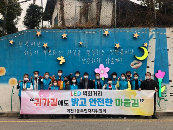 [KNT한국뉴스타임] 양주시 회천1동 주민자치위원회는 올해 주민자치 특화사업인 ‘귀갓길에도 밝고 안전한 마을길’의 일환으로 덕정중학교 옆의 마을 담장에 LED 벽화사업을 실시했다고 밝혔다.