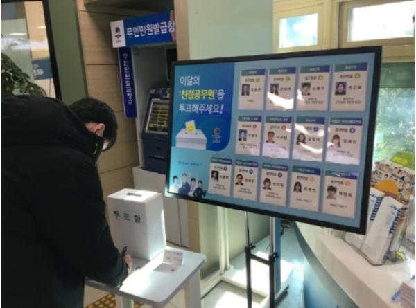 투표방식은 민원실 입구에 민원창구 직원들의 이름과 사진이 있는 안내판과 투표함?투표용지를 비치하고, 민원실을 방문해 민원서비스를 제공받은 시민들이 직접 투표에 참여하는 방식으로 친절공무원 선정에 시민들이 직접 참여함으로써 선정과정의 투명성과 객관성에 의의가 있다.