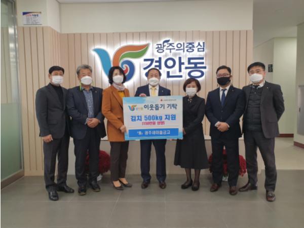 [KNT한국뉴스타임] 광주시는 MG광주새마을금고에서 지난 10일 경안동 행정복지센터를 방문, 어려운 이웃에게 전달해 달라며 김치 500㎏(150만원 상당)를 기탁했다고 밝혔다.