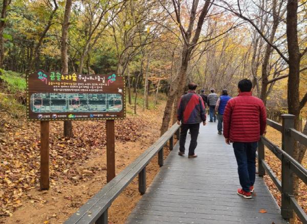 공사구간은 총 450m로다. 주거지 인근 진입로 3개소에 데크로드를 설치해 총 4km의 곰솔누리숲 산책로와 연결해 누구나 즐길 수 있는 숲길을 조성했다.