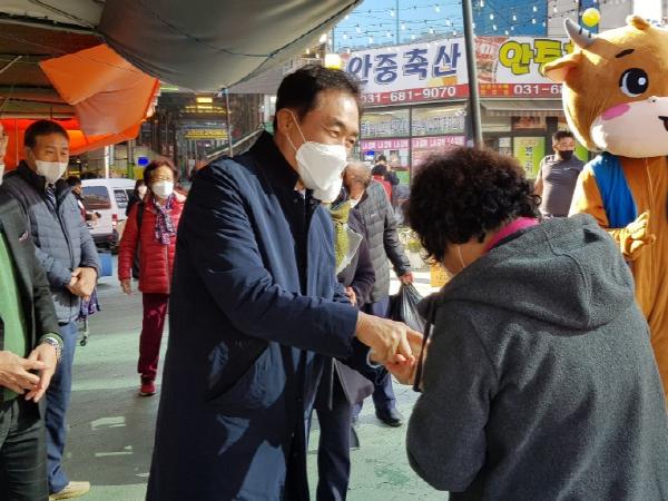 정장선 평택시장은 안중시장 마스코트 ‘중이’와 함께 시장을 방문 하는 시민들에게 가래떡을 나누어 드리며 “앞으로 안중시장을 더 많이 찾아 달라”는 당부의 말씀을 드렸다.