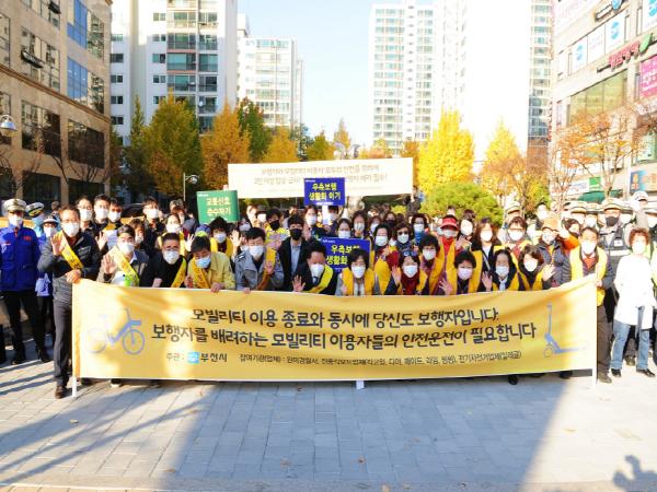 장덕천 부천시장은 “최근 사용 빈도가 높아진 모빌리티의 안전 문제를 미리 고민하고 반영한 이번 캠페인을 시작으로 소극행정은 지양하고 적극행정 실천에 앞장서길 바란다”고 당부하며 “이번 캠페인을 시작으로 시민들은 안전하게 보행하고 PM 등의 녹색 교통수단은 배려하며 상호공존하는 교통정책을 추진해 나가겠다”고 말했다.