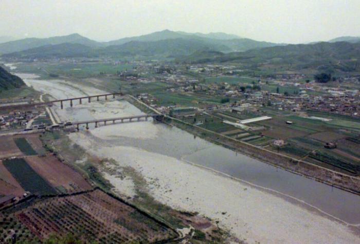 교량은 일제때 놓인것이며 견고하고 검푸르르하다