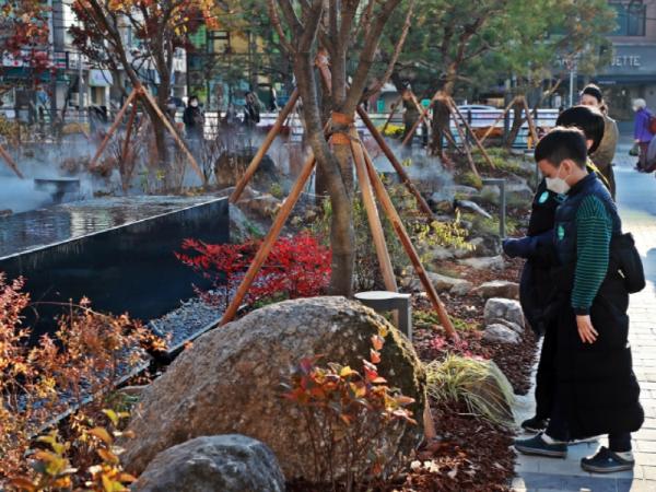 평택역 2번 출구 서부광장에 조성된 이번 정원은 2018년 울산국가정원박람회 쇼가든 대상과 2020년 LH 고덕 가든쇼 대상을 수상한 이주은 작가가 직접 설계한 작품으로, 도심 속에 깊고 그윽한 숲을 연출하기 위해 그늘목과 수조, 미스트분수 등을 도입하고 이팝나무 등 15종 259주, 초화 2,511본이 식재됐다.