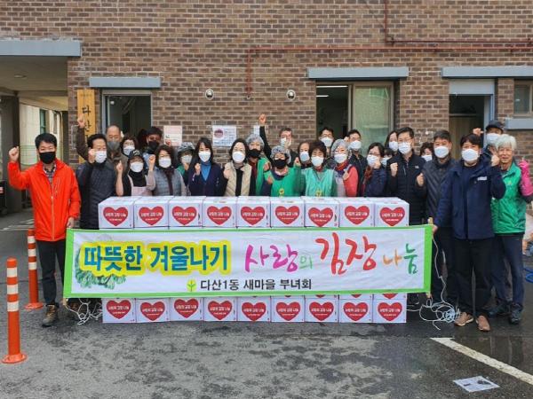 [KNT한국뉴스타임] 남양주시 다산1동 새마을부녀회(회장 방금선)는 13일 왕숙천 마을회관에서 따뜻한 이웃사랑 실천으로 ‘사랑의 김장 나눔’행사를 펼쳤다.