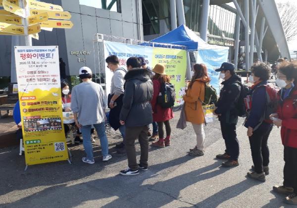 이번 이벤트는 ’평화포토‘와 ’평화메시지‘로 구성해 평화누리공원을 찾은 지역주민과 관광객을 대상으로 진행했다. 평화포토는 임진각 내 포토존에서 1장 이상의 사진촬영 후 인증사진을 등록해 참여하는 방법이며, 평화메시지는 평화와 관련된 주제어를 선정해 평화를 염원하는 메시지를 작성하는 것으로 두 가지 이벤트에 참여한 대상자에게 소정의 상품을 증정했다.