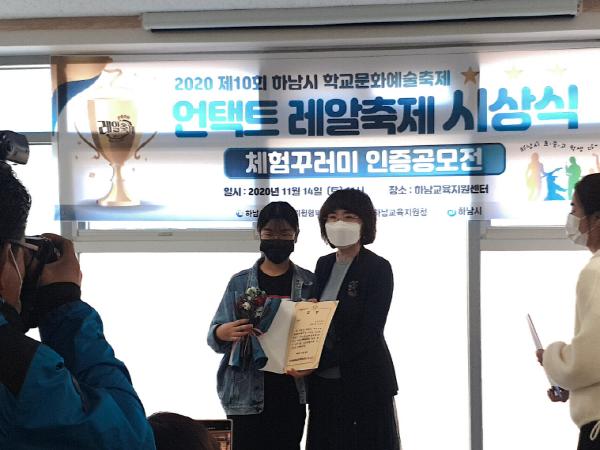 [KNT한국뉴스타임] 광주하남교육지원청은 14일 제10회 하남시학교문화예술축제-언택트 레알축제(체험꾸러미) 인증공모전 시상식을 개최했다.