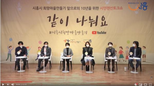 [KNT한국뉴스타임] 시흥시는 시민 랜선 토크쇼「같이 나눠요 #시흥시희망마을만들기」가 11월 17일 오후 2시부터 시흥시 공식 유튜브 채널에서 생중계로 진행했다고 밝혔다.