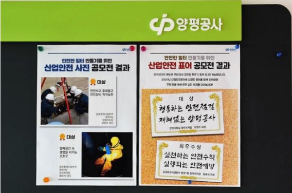 이번 산업안전 공모전에 입상한 한 직원은 “공모전을 통해 안전에 대해 다시 한번 생각해볼 수 있는 계기가 되었다”며, “양평공사의 안전은 나로부터 시작된다는 신념을 가지고 산업재해 없는 안전한 일터 만들기에 앞장서겠다”고 전했다.