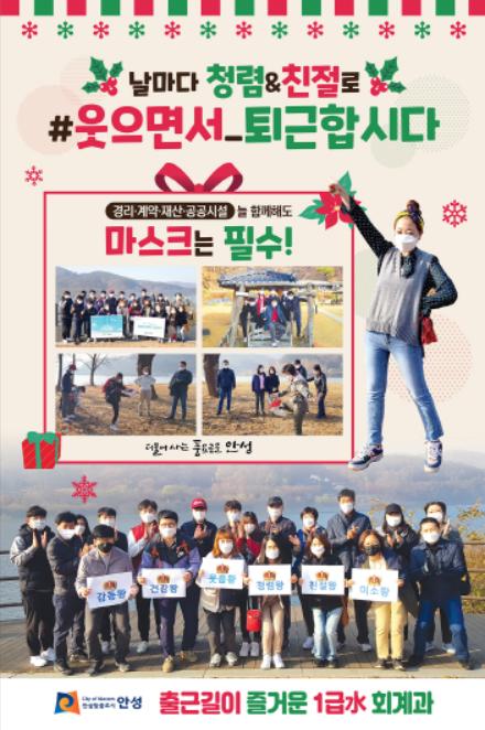 [KNT한국뉴스타임] 안성시 회계과에서 ‘날마다 청렴&친절로 웃으면서 퇴근 합시다’라는 표어로 청렴포스터를 제작했다고 18일 밝혔다.