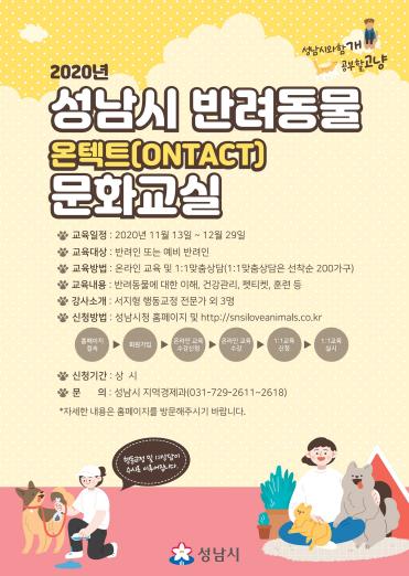 [KNT한국뉴스타임] 성남시는 오는 12월 29일까지 ‘온라인 반려동물 문화교실’을 운영한다.