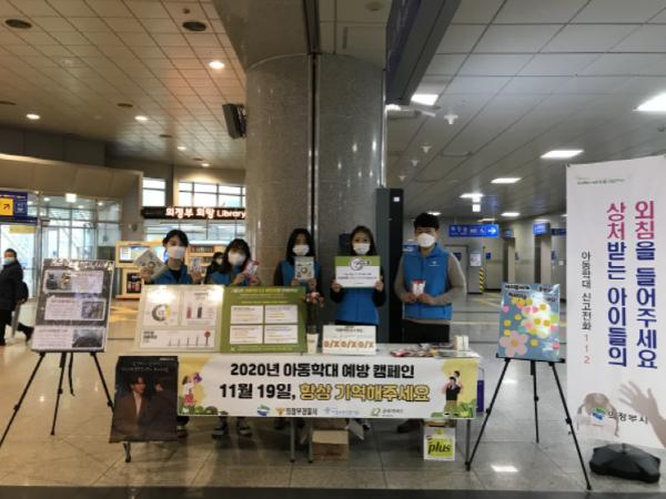 [KNT한국뉴스타임] 의정부시는 11월 19일 아동학대예방의 날을 맞아 의정부역사에서 시민들을 대상으로 경기북부아동보호전문기관 및 의정부경찰서, NGO원정대 등과 함께 ‘민·관 합동 아동학대 예방 캠페인’을 실시했다고 밝혔다.