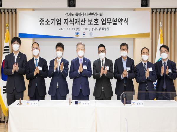 이재명 경기도지사는 19일 경기도청에서 김용래 특허청장, 홍장원 대한변리사회장과 이 같은 내용의 ‘중소기업 기술탈취 근절 및 지식재산 보호를 위한 업무협약’을 체결했다.