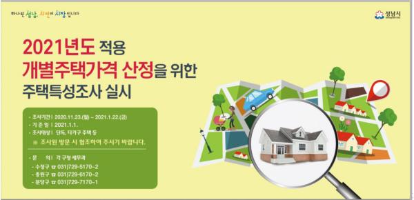 [KNT한국뉴스타임] 성남시는 오는 11월 23일부터 내년도 1월 22일까지 두 달간 단독, 다가구, 상가주택 등 3만2679호를 대상으로 개별주택가격 특성 조사에 나선다.