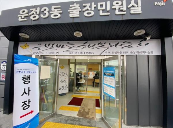 이날 전시회에는 그간 어르신들이 직접 만들어온 자수 작품(야생화 개인작품, 마스크, 배냇저고리, 브로찌 등)이 전시됐다. 최창호 파주시의원, 윤병렬 운정3동장, 김윤재 대한노인회파주지회장, 우관제 파주문화원장, 연진흠 파주시자원봉사센터장, 양옥련 한국미술협회파주지부장, 윤기덕 운정3동발전협의회장 등을 비롯해 운정3동에서 활동하는 여러 단체 및 시민들이 방문해 전시회를 축하하고 어르신들의 활동을 응원했다.