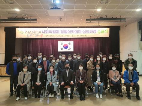 [KNT한국뉴스타임] 구리시는 19일 시청 대강당에서 ‘2020 구리시 사회적경제 창업아카데미 심화과정’수료식을 갖고 29명의 수료생을 배출했다.