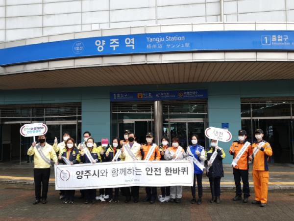 [KNT한국뉴스타임] 양주시는 지난 19일 양주역 일원에서 제290차 안전점검의 날을 맞아 ‘대한민국, 안전(하자)’의 일환인 ‘코로나19 예방(하자)’을 주제로 안전사고 예방 캠페인을 실시했다고 밝혔다.