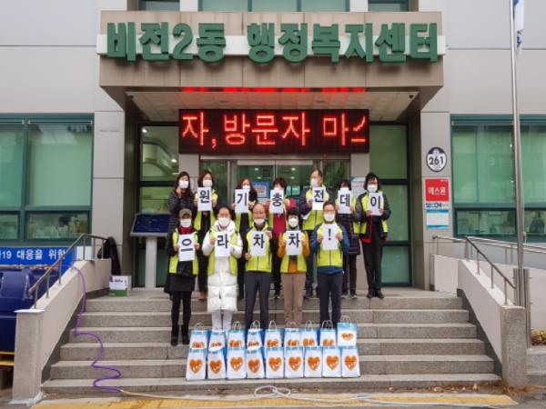 [KNT한국뉴스타임] 평택시는 비전2동 지역사회보장협의체(동장 오창수, 민간위원장 오중근)에서 지난 20일 코로나19 예방과 면역력 강화를 위한 저소득 소외계층 45가구에 비대면 방문해 원기충전 영양식을 전달했다고 밝혔다.