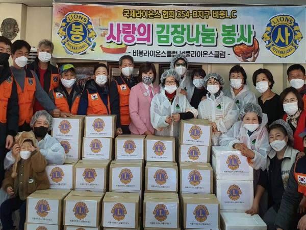 방미희 국제라이온스 354-B지구 부총재는 “비봉라이온스클럽과 넝쿨라이온스클럽의 합동 김장김치 봉사가 일회성의 행사가 아닌 라이온이 직접 참여하는 지속적인 행사로 유지하고, 오늘 정성들여 담근 맛있는 김치를 이웃들에게 잘 전달하길 부탁한다”고 전했다.