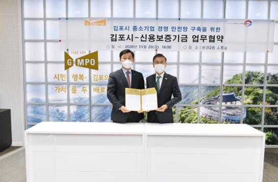 [KNT한국뉴스타임] 김포시는 코로나19의 장기화로 외상 거래 후 대금을 회수하지 못하는 기업들의 연쇄 도산을 예방하기 위해 지난 20일 신용보증기금과 ‘중소기업 매출채권 보험료 지원사업’ 업무협약을 체결했다.