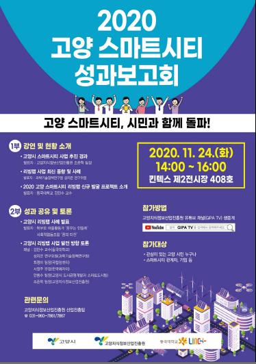 [KNT한국뉴스타임] 고양시는 11월 24일 14시 2020년 시민과 함께 추진한 리빙랩의 온라인 성과보고회를 개최하고 유튜브(GIPA TV)로 방송한다고 밝혔다.