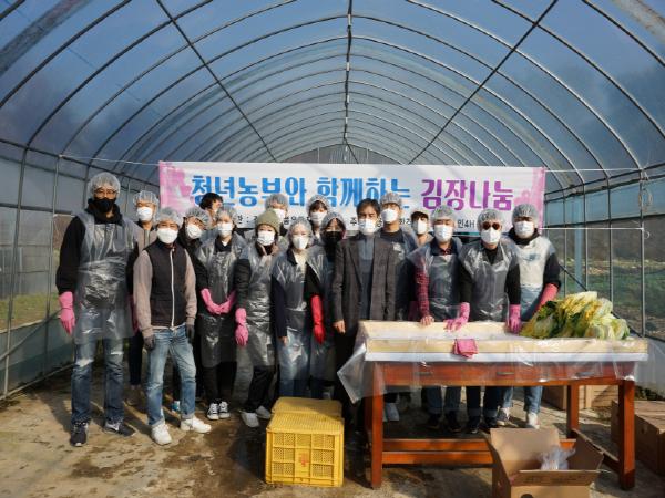 [KNT한국뉴스타임] 용인시는 23일 관내 청년 4-H, 친환경농업인연합회 등 2개 단체 청년 농업인 20명이 무료 급식 시설에 직접 담근 20㎏짜리 김치 13상자를 전달했다고 밝혔다.