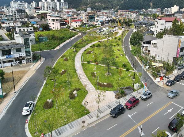 총 9,480㎡ 면적에는 3,520㎡의 공원과 산책로, 주차장 57면이 조성됐으며, 도시계획도로 4개소 430m와 소나무 및 팥배나무 등 조경식재 10여종과 휴게그늘막 1식 등이 설치됐다.
