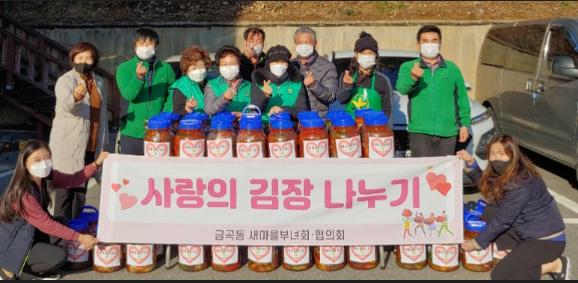 [KNT한국뉴스타임] 남양주시 금곡양정행정복지센터(센터장 손일성)는 금곡동 새마을부녀회(회장 강순복, 협의회장 강성준)에서 지난 23일 사랑의 김장나눔 행사를 실시하고, 관내 독거노인, 한부모가정 등 취약계층 50가구에 김장김치를 비대면으로 전달했다고 전했다.