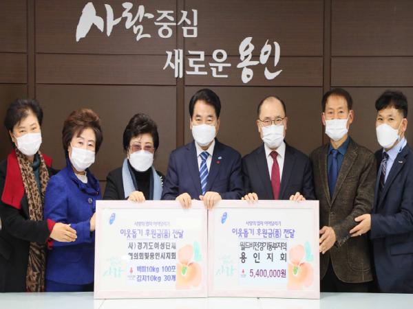 [KNT한국뉴스타임] 용인시는 24일 월드비전 경기동부지역본부 용인지회(회장 황재열)와 경기도여성단체협의회(회장 이금자) 및 경기도여성단체협의회 용인시지회(회장 서혜순)가 어려운 이웃들을 위해 써 달라며 성·금품을 기탁했다고 밝혔다.